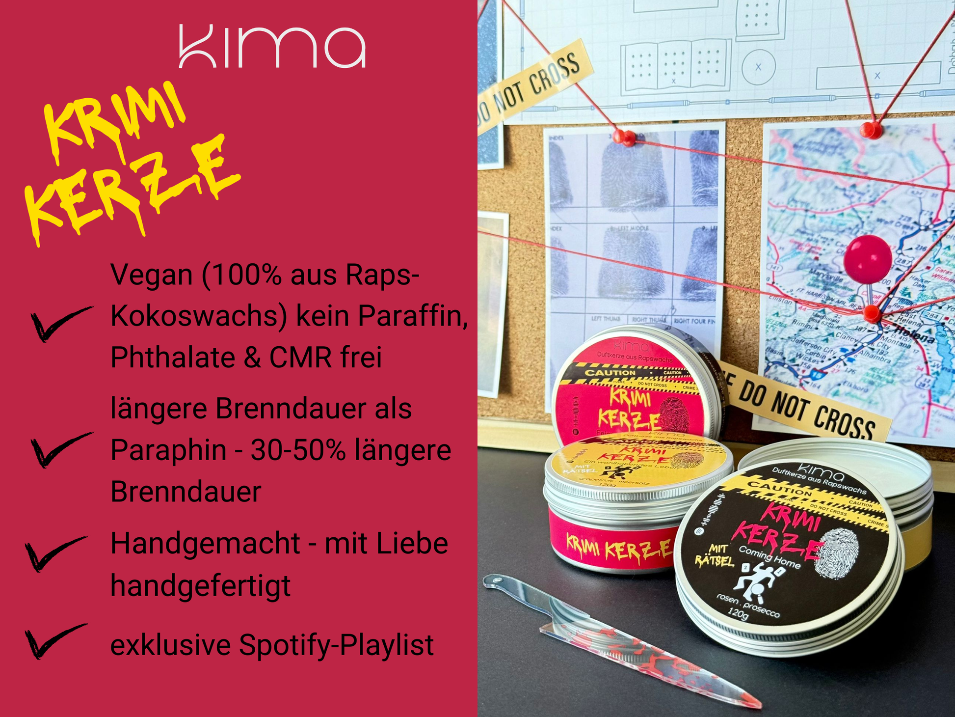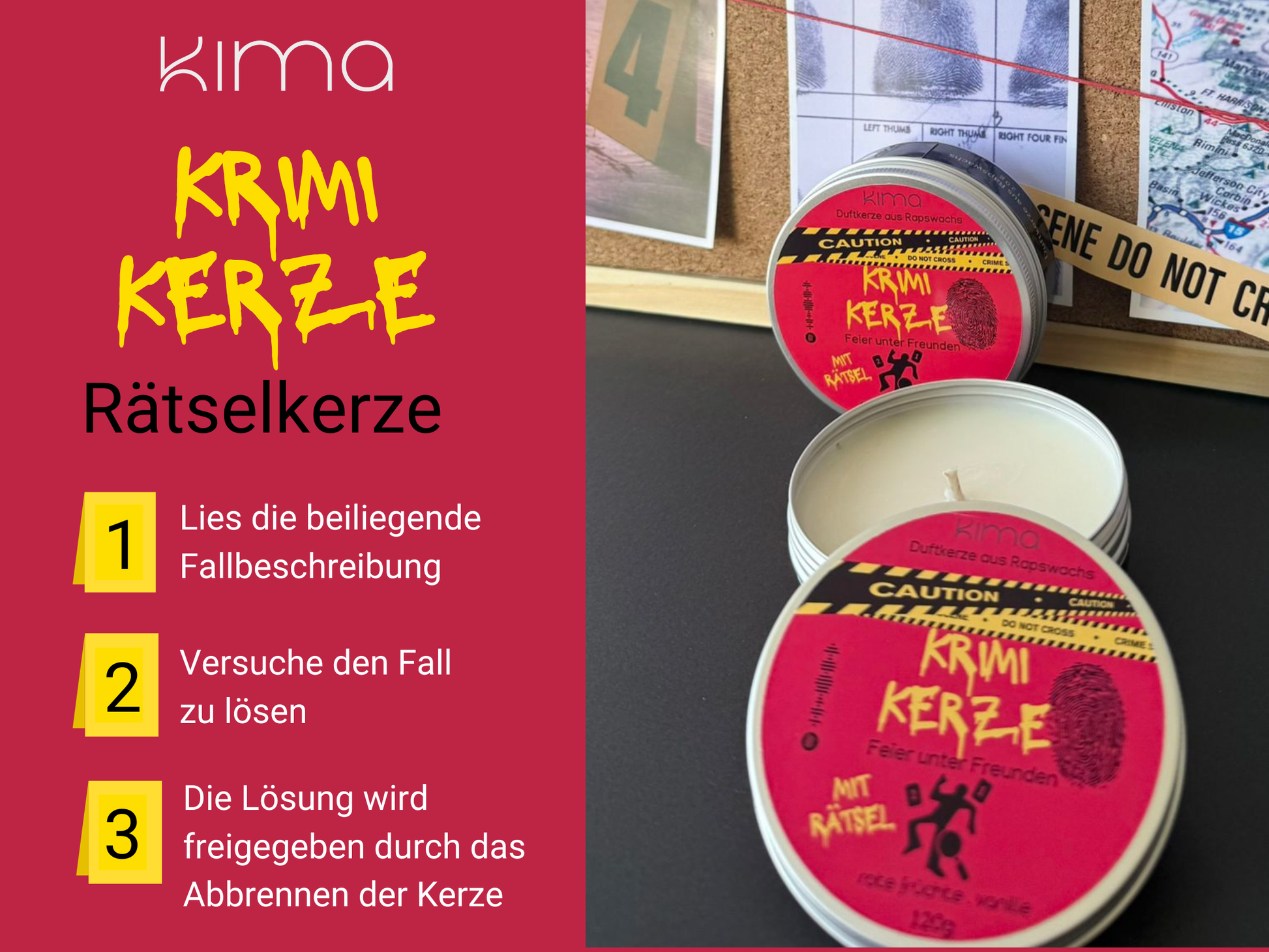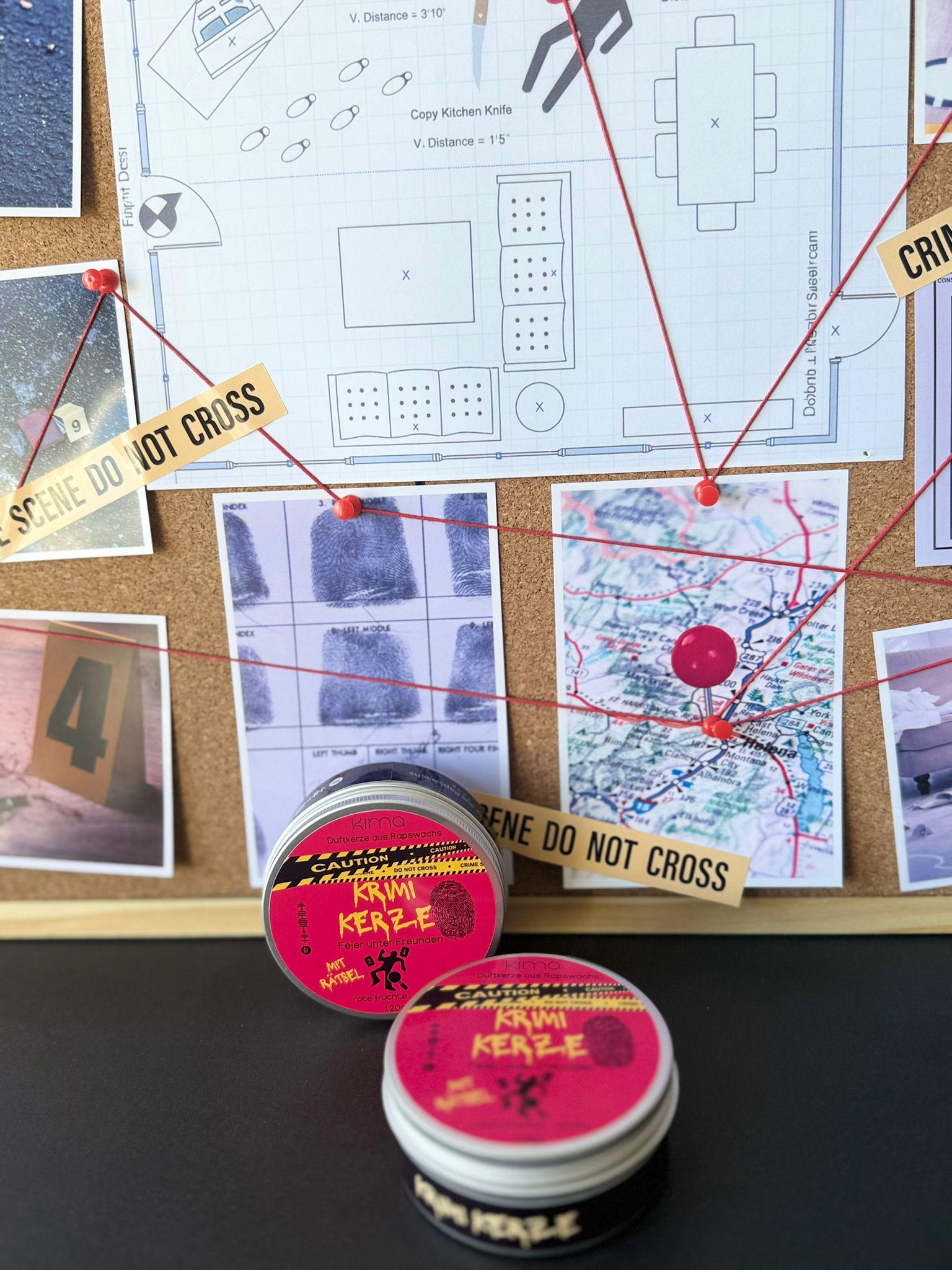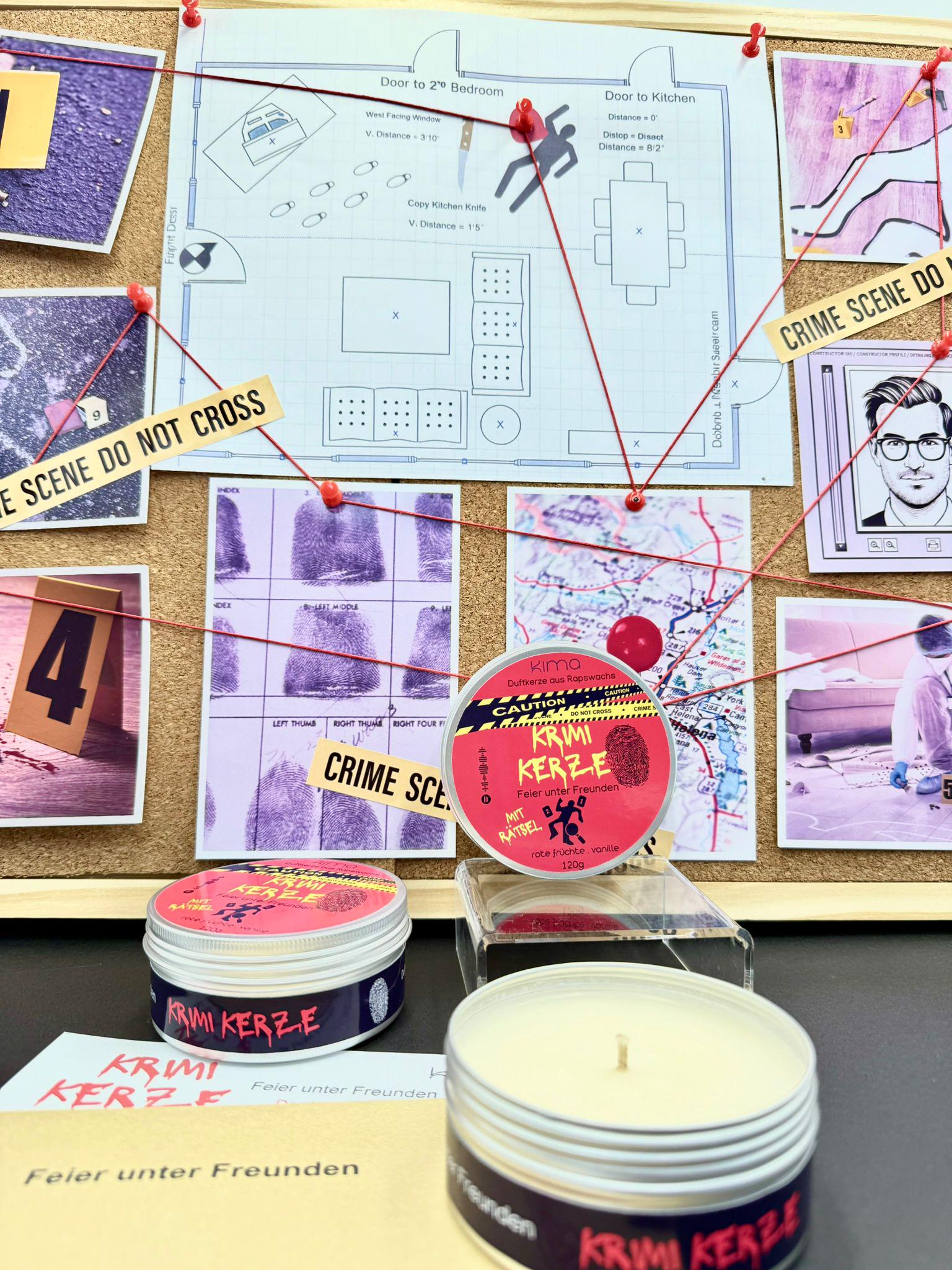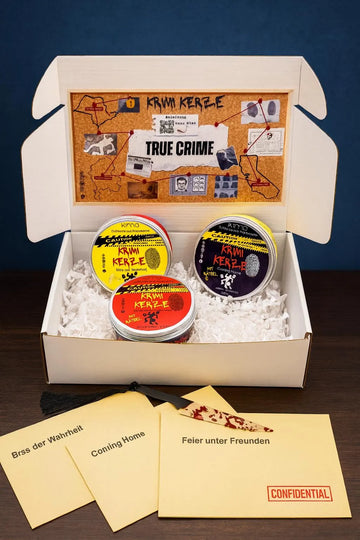 True Crime "Feier unter Freunden" Duftkerze mit Rätsel Kriminalfall Spotify Bookish Krimi Erlebnis Denkspiel Geschenk Geburtstag Freundin