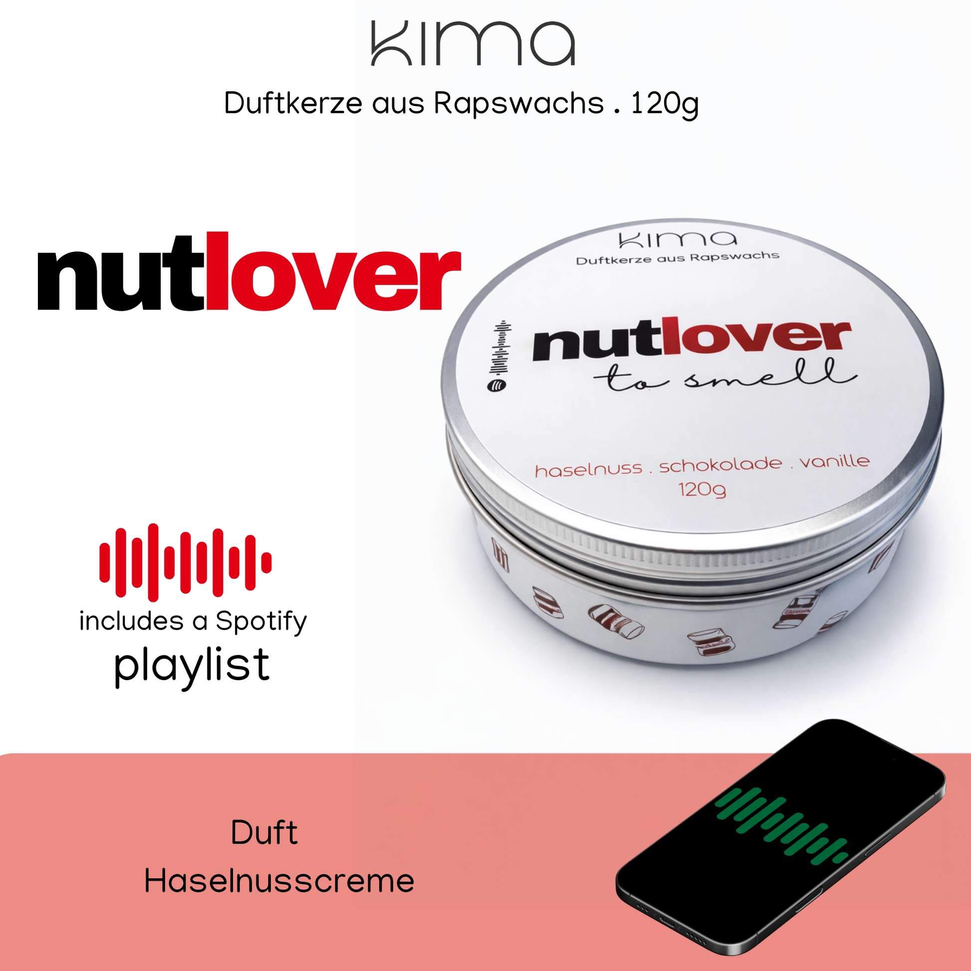 Herbst Kerze Nutella Liebhaber Duftkerze Haselnusscreme Duftkerze im Blechdose aus Rapswachs Spotify-Code mit Soundtrack