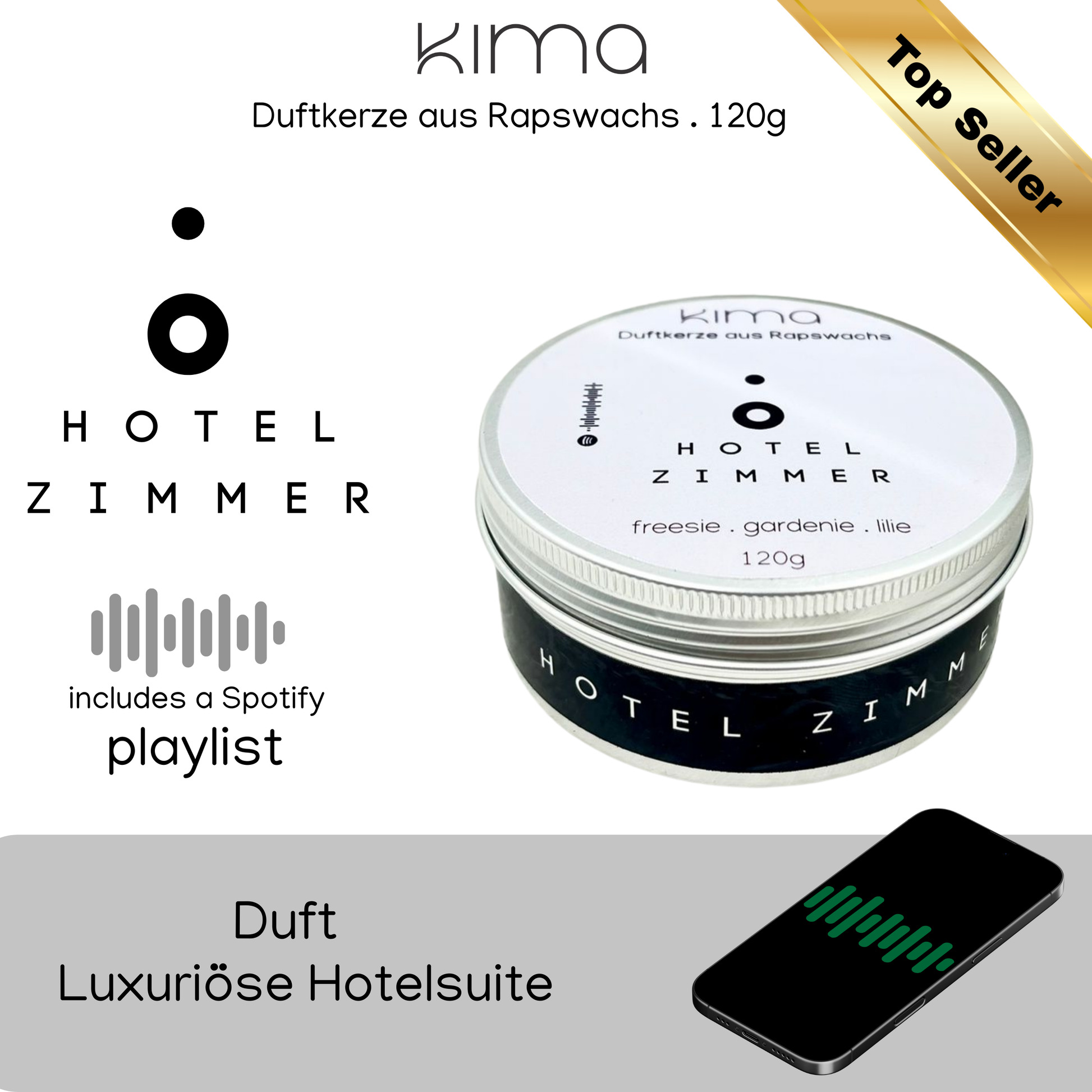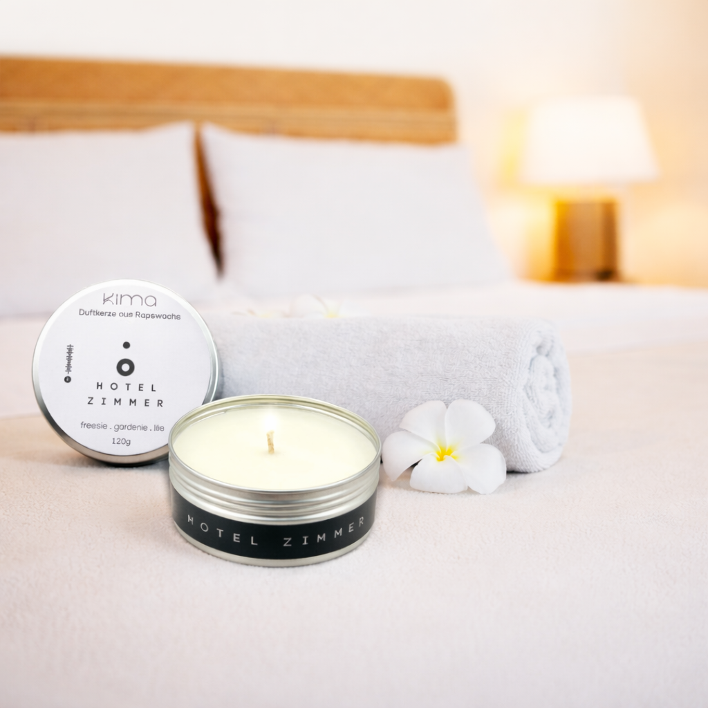 Stell dir vor, du betrittst ein luxuriöses 5-Sterne-Hotel, umhüllt vom feinen Duft weicher, makelloser Bettwäsche. Mit unserer neuen Duftkerze Hotel Zimmer kannst du dieses Gefühl von Luxus und Entspannung in deinem eigenen Zuhause erleben!